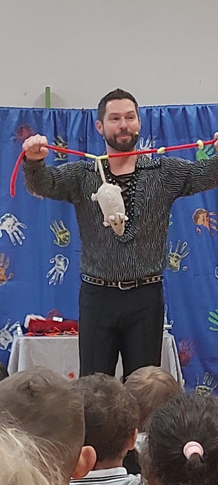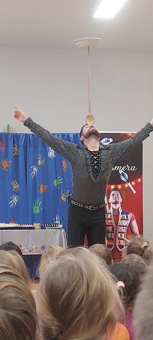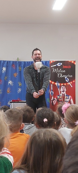 Kouzelník M. Ošmera předvedl našim dětem krásné žonglérské vystoupení.