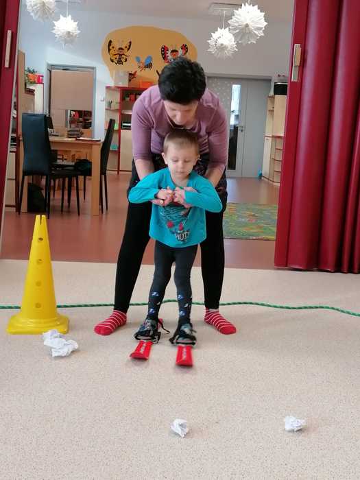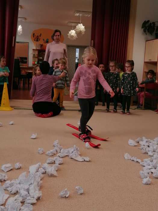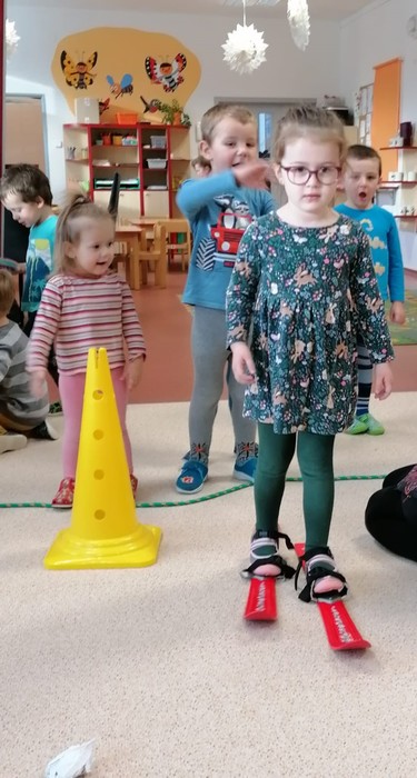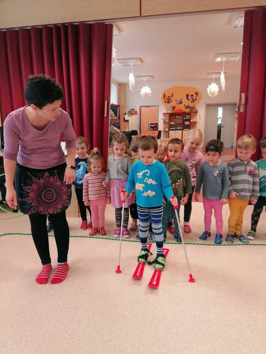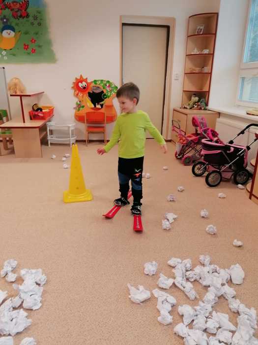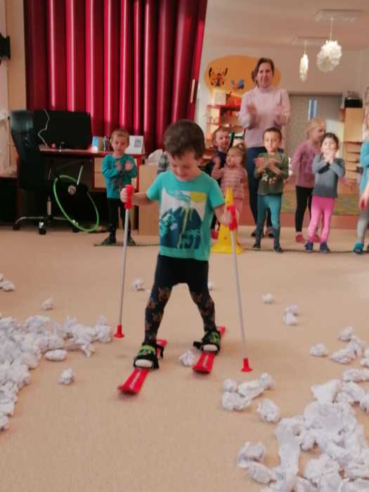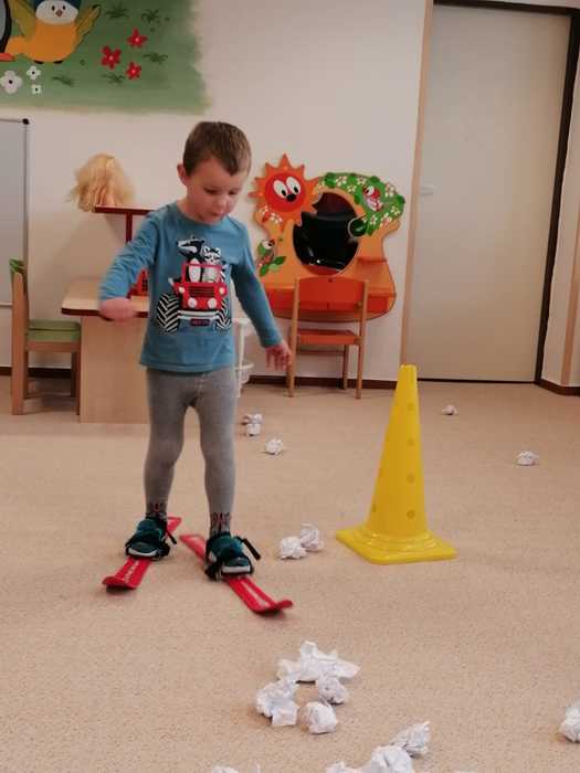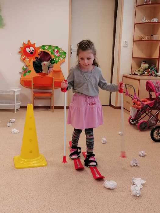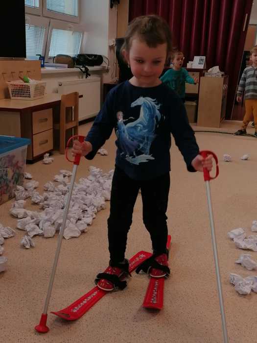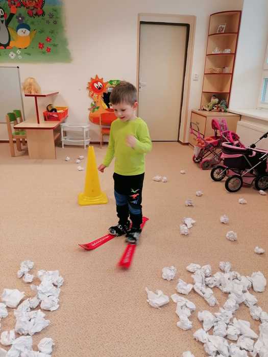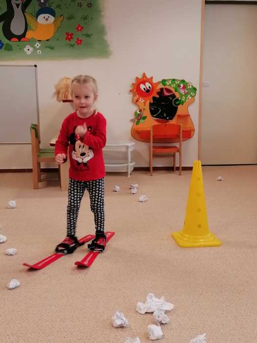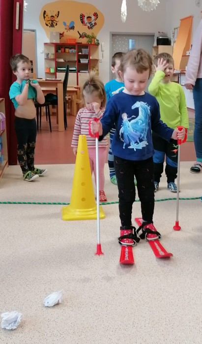 Leden tedy u nás v mateřské škole patřil sportu a všemu co je třeba při zimních radovánkách mít na paměti. Děti se učily nejen, jak se správně oblékat, aby nám nemrzly uši, ale především jak dodržovat bezpečnost a dbát o své zdraví při sportovních aktivitách. Uvědomit si např. že je třeba nosit helmu nejen při jízdě na kole, ale také při lyžování či bruslení.