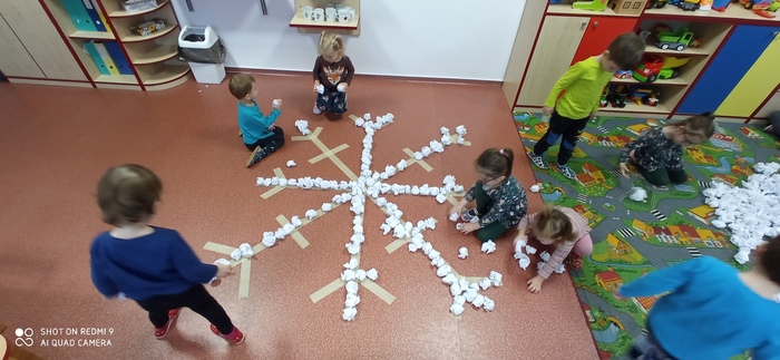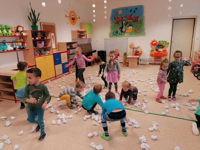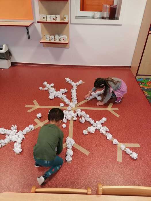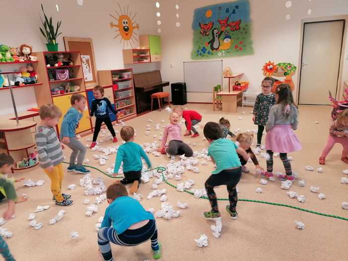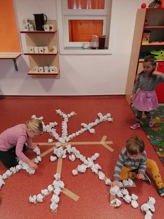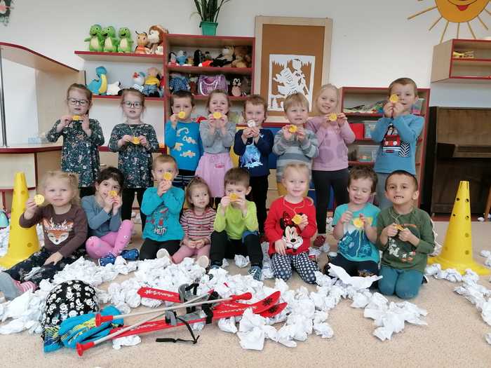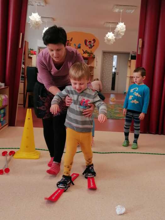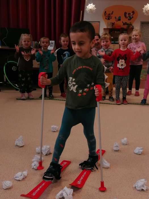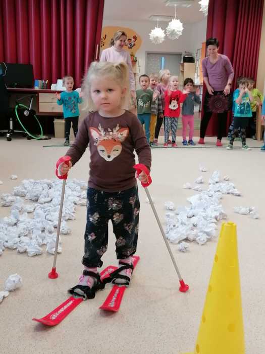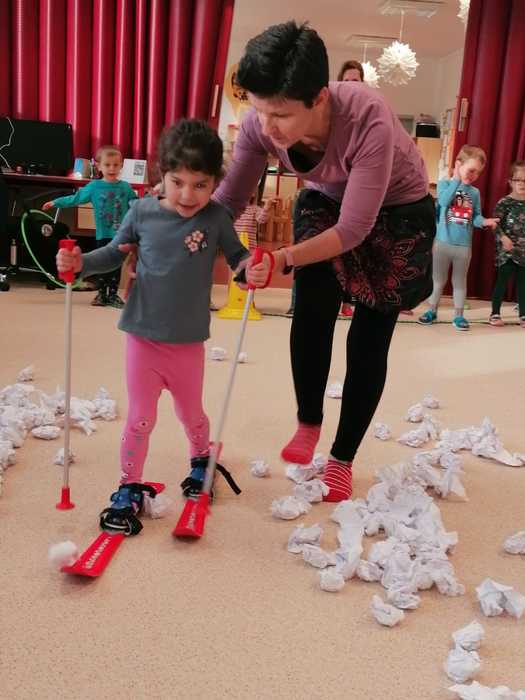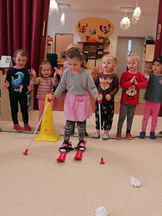 Leden tedy u nás v mateřské škole patřil sportu a všemu co je třeba při zimních radovánkách mít na paměti. Děti se učily nejen, jak se správně oblékat, aby nám nemrzly uši, ale především jak dodržovat bezpečnost a dbát o své zdraví při sportovních aktivitách. Uvědomit si např. že je třeba nosit helmu nejen při jízdě na kole, ale také při lyžování či bruslení.
